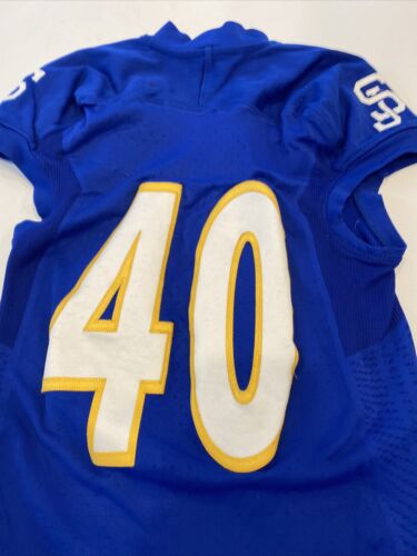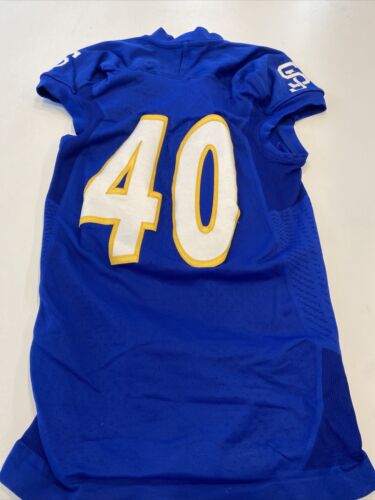 D1Jerseys is proud to bring you this game worn football jersey from San Jose State University. This Spartans football jersey was worn during game action. Numbers, logos and patches are stitched or embroidered onto the jersey.